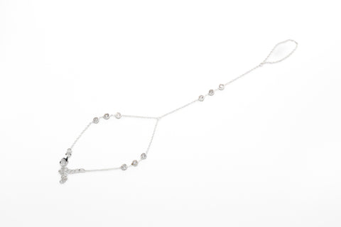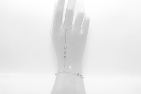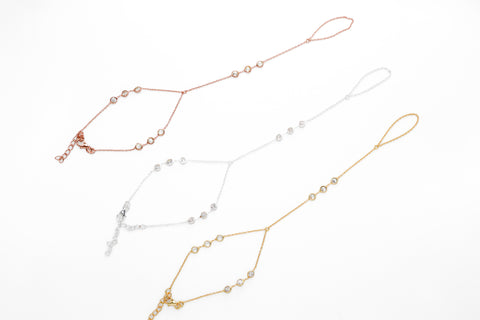 The Radiance Ring Bracelet - a delicate hand chain crafted in rose gold-filled sterling silver and adorned with bezel-set white cubic zirconia for an added touch of light.