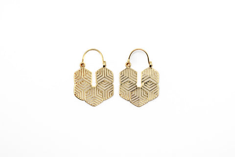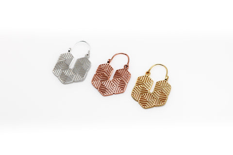 The Linn Hoops feature laser-cut hexagon silhouette - symbolizing divine balance and feminine strength - infused with tribal elegance and modern precision. Crafted in sterling silver and finished with warm rose gold, these medium size earrings whisper stories of ancient power and mystic femininity.